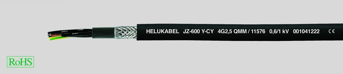 UV-bestandig styrekabel JZ600YCY med 7G1,5 ledere og T500 godkendelse.