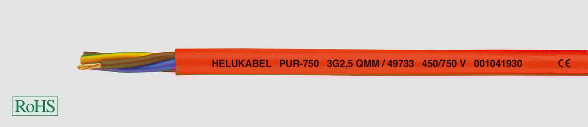 PUR kabel 750V med orange kappe. Kablet er særdeles velegnet som forbindelseskabel på byggepladser og andre steder med høj mekanisk belastning.