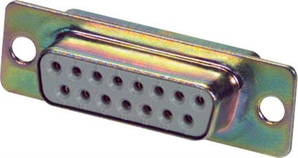 D-Sub 15 polet lige hun for lodning. Drejede guldbelagte nikkel kontakter - Q-Klasse 3.