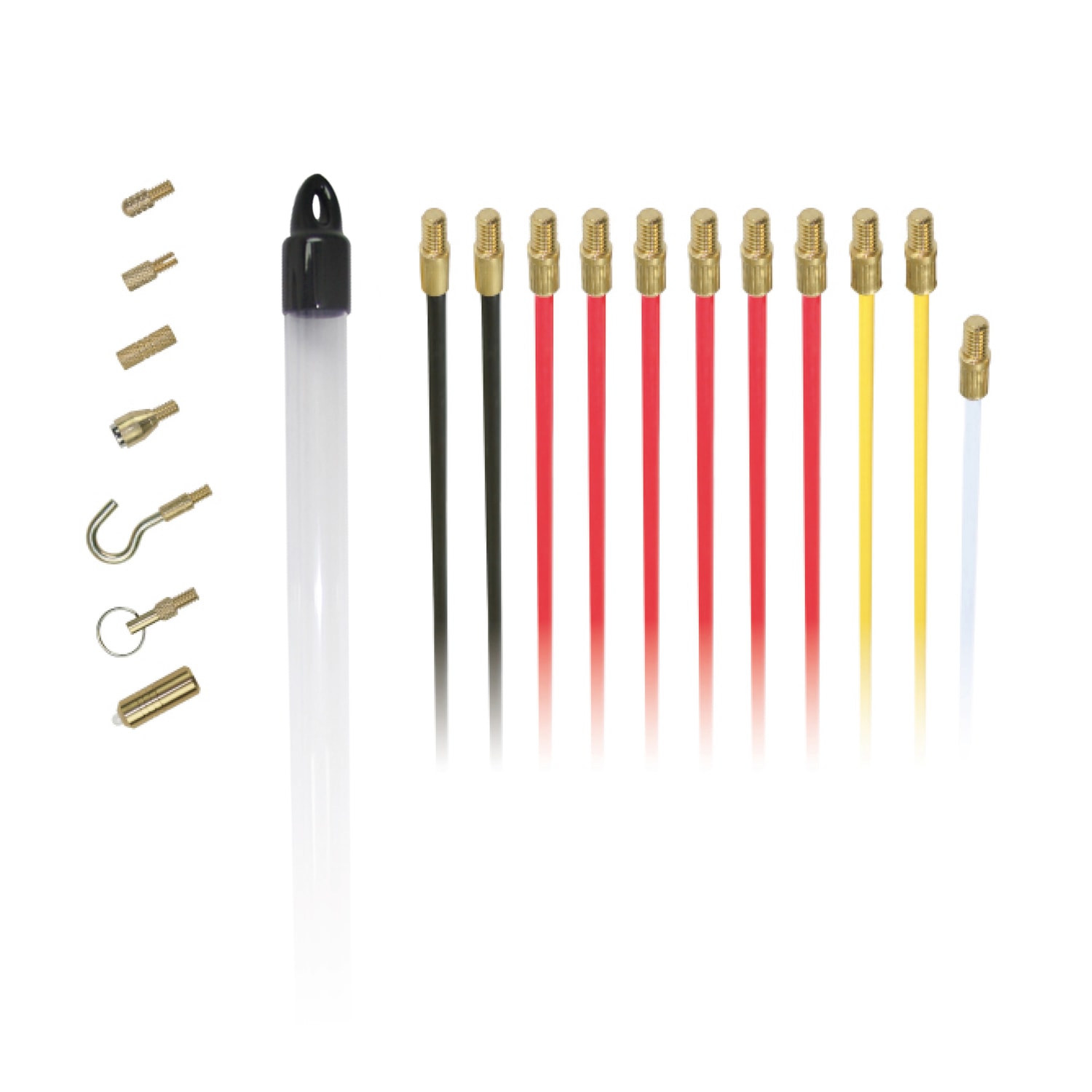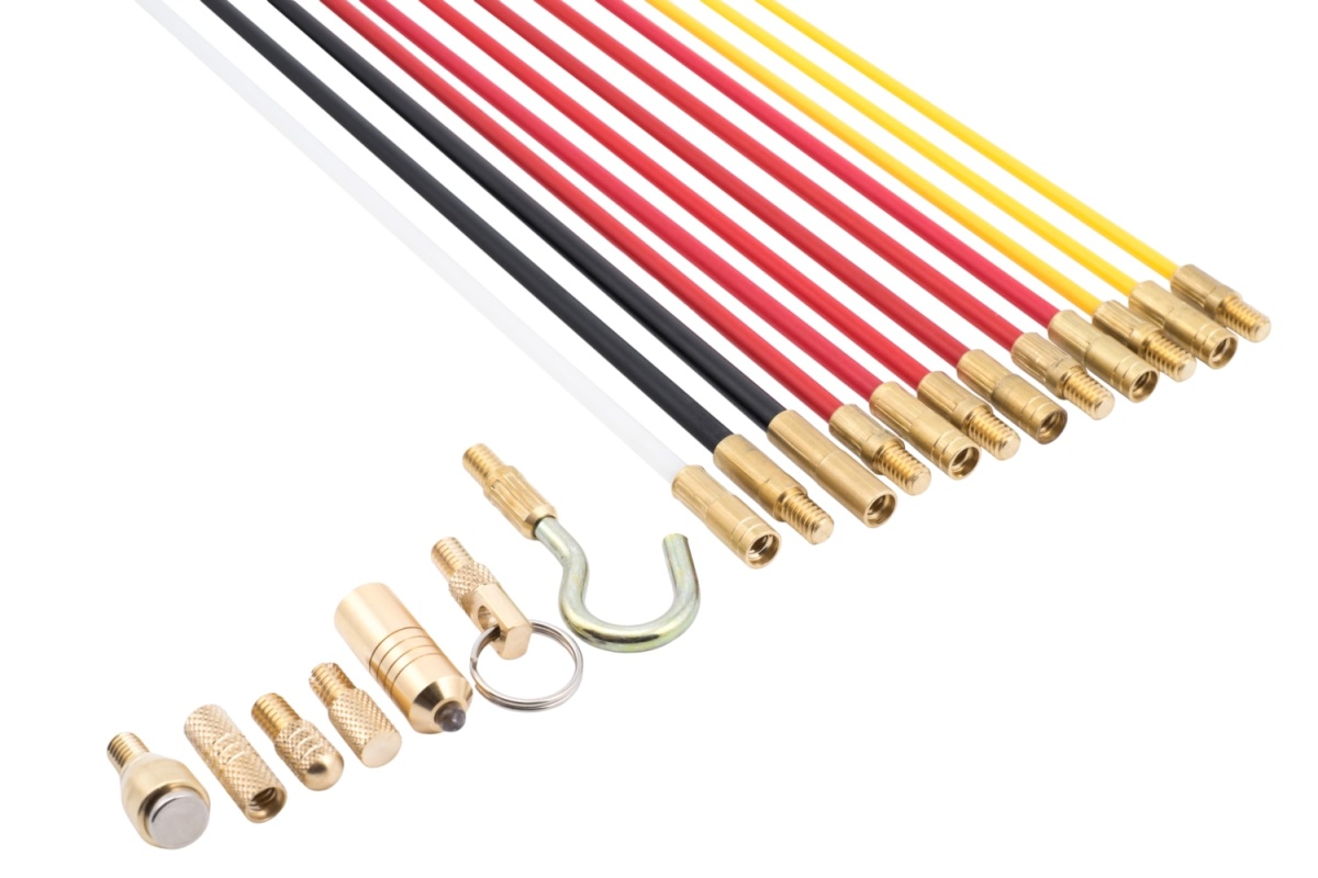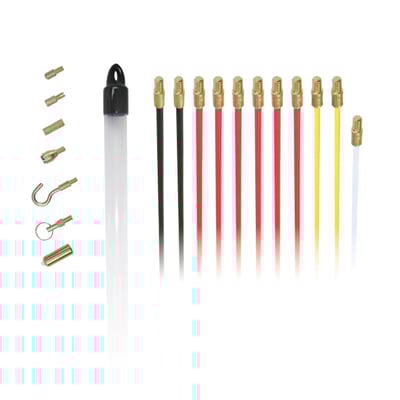 Super Rod CRSD gør kabeltræk nemt! Sættet indeholder 10 meter søgestang og 8 stk. tilbehør. Uundværligt værktøj for enhver elektriker.