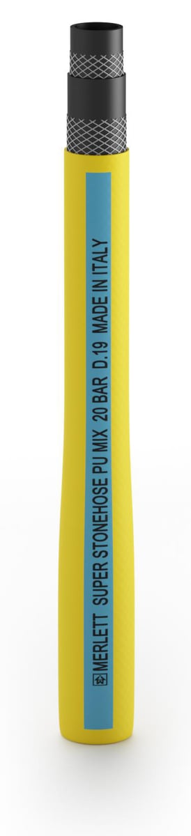 Kraftig gul trykluftslange med PU belægning. Glat indvendigt og udvendigt. Ekstremt slidstærk. Klippezone for hver 15 eller 20 meter. Standard er 20 meter.