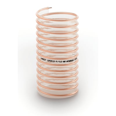 Meget kraftig PUR slange med indstøbt kobberbelagt stålspiral. Godstykkelse fra 1,0 mm til 1,1 mm.