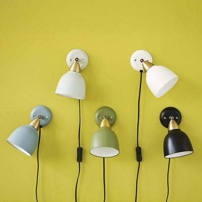 Superliving Urban kort væglampe med drejeled, hvor lampehovedet kan drejes 345°. Produceret i lakeret metal med mat messing top og leveres med 2,3 meter sort plastledning med afbryder.