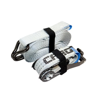 Båndsurring til lastsikring med dobbelt J-krog. Ideel til ladbiler og trailere. Godkendt til erhvervsmæssig brug.