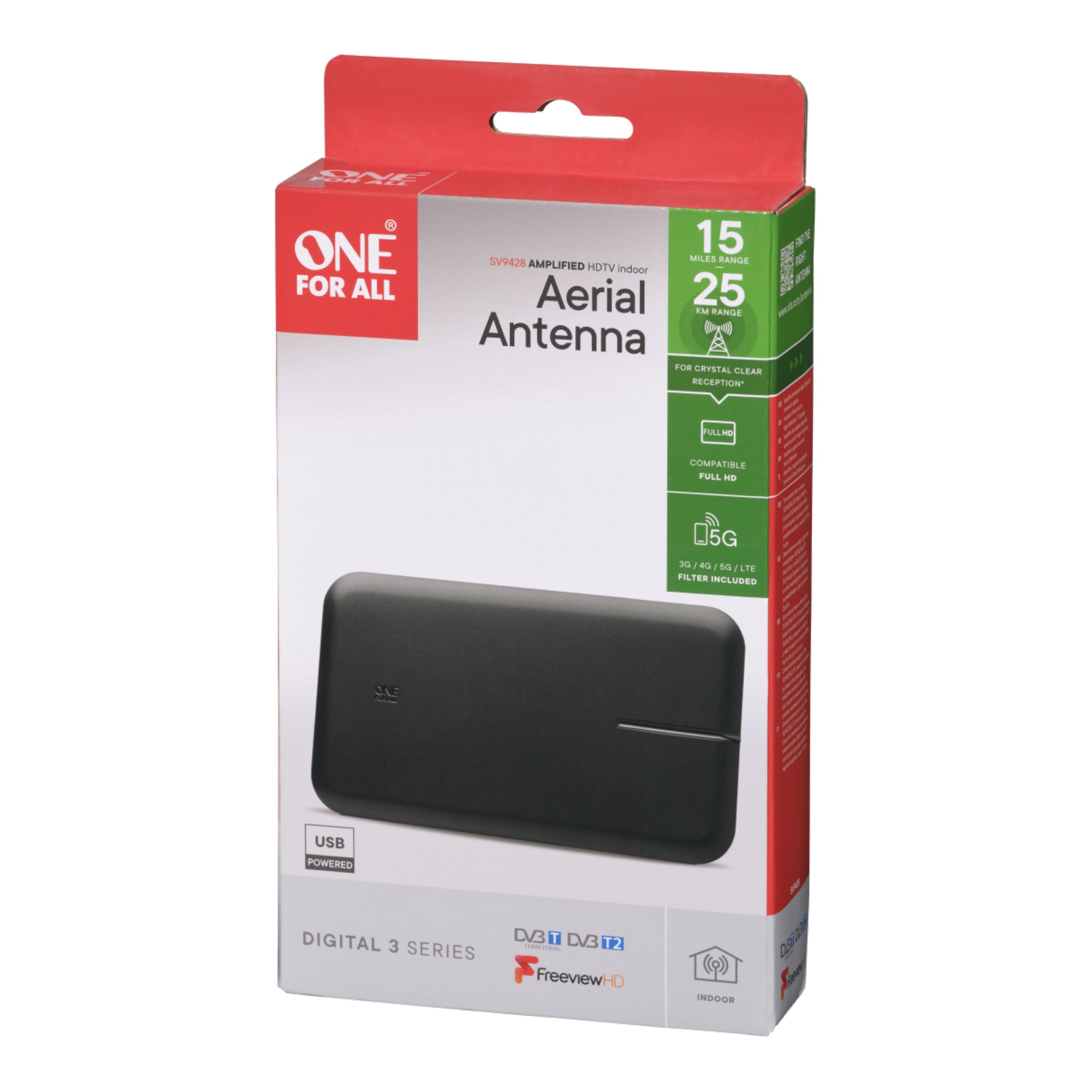 Med sit flade og moderne design passer denne antenne diskret ind i ethvert interiør. Den sorte finish giver et stilrent udtryk, der komplementerer moderne hjemmeelektronik.