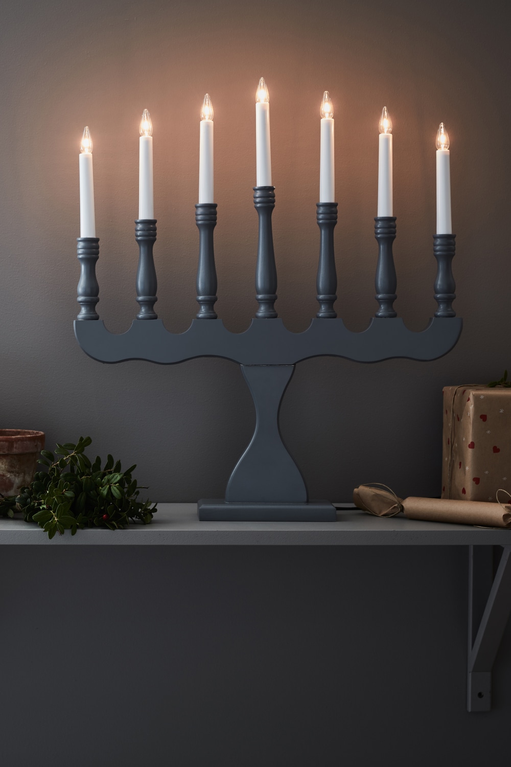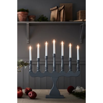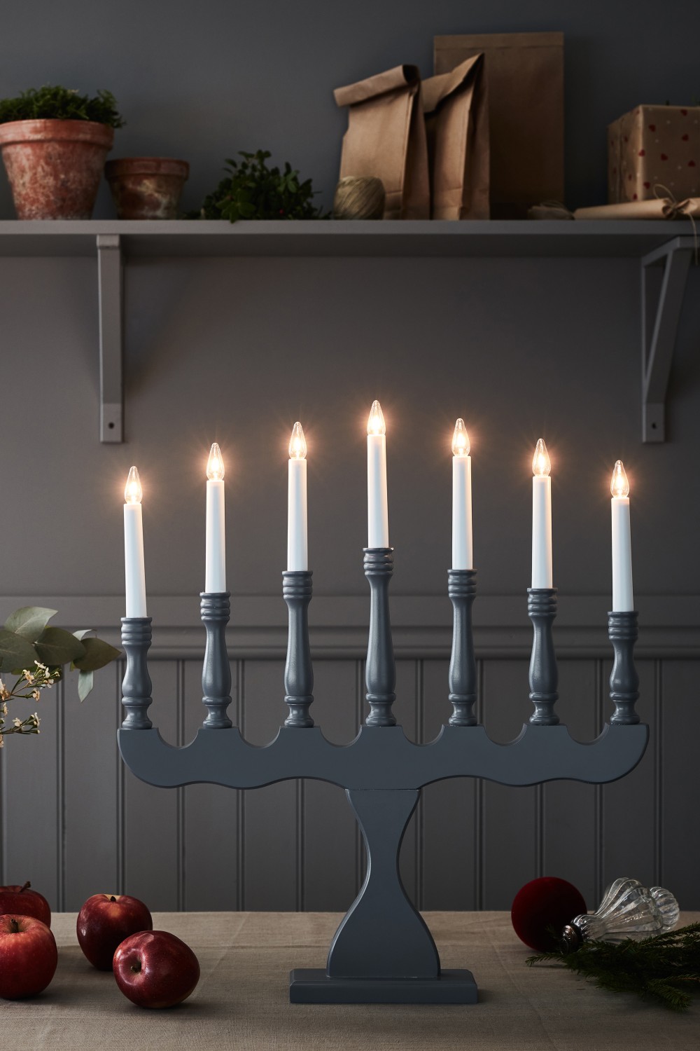Elegant Svaneholm julelysestage med 7 varm hvide lys. Perfekt til indendørs brug og skaber en hyggelig julestemning.