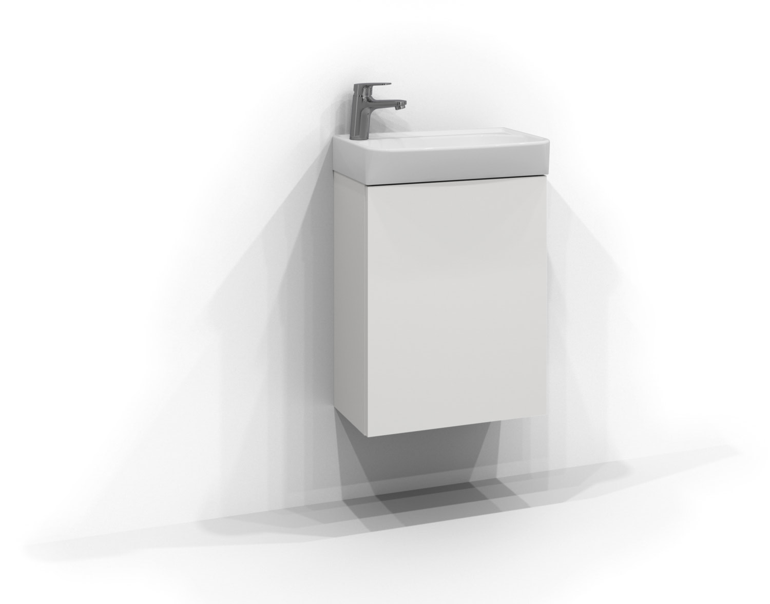 Svedbergs Bloc underskab i hvid melamin med soft close låge. Måler 45x25x57 cm og er venstrevendt. Ideelt til badeværelset.