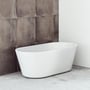 Ume er et ovalt, fritstående badekar i hvid Lucite. Det ovale design skaber et blødt og moderne udtryk. Lucite giver en varmere og blødere fornemmelse mod huden, og er desuden farvebestandigt. Det fritstående design gør det både smukt og let at placere i rummet.