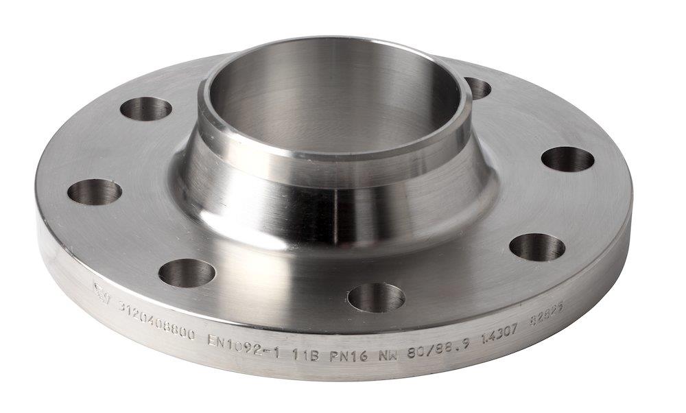 Denne svejseflange med krave er produceret i rustfrit stål og overholder EN-1092 normen. Flangen er velegnet til brug i drikkevandsinstallationer, da den rustfri stålkvalitet ligger indenfor standarden EN 1.4000 til EN 1.4999.