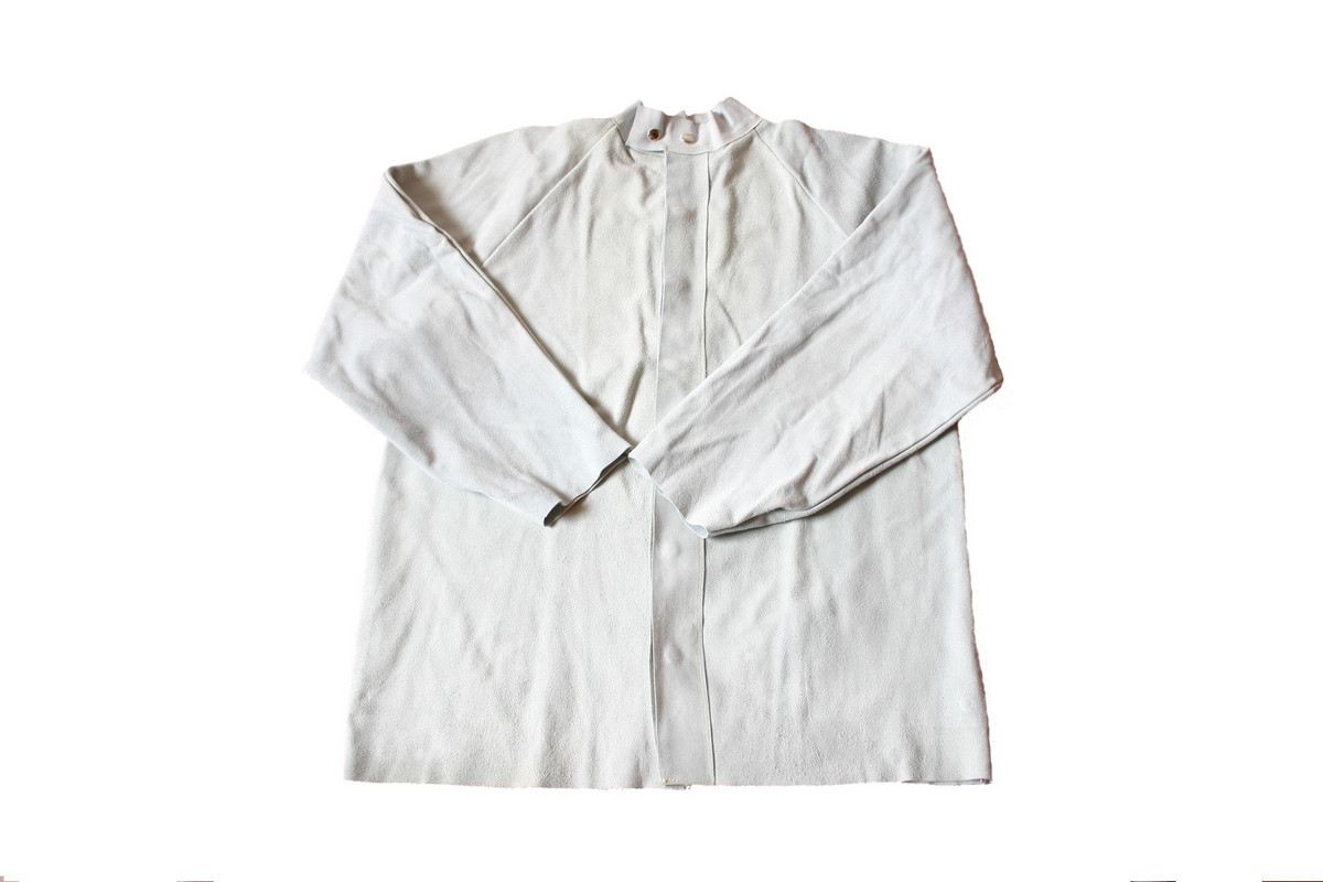 Svejsejakke i oksespalt med trykknapper og Kevlar tråd. Tykkelse: 1,6 - 1,8 mm. Størrelse: 2XL. Til svejsere og smede.