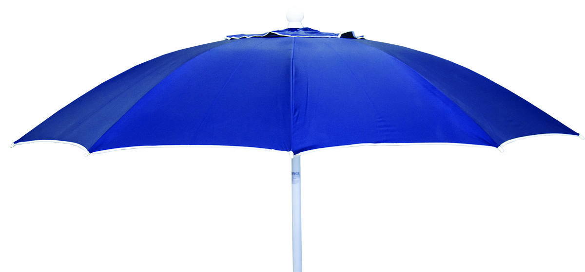 Blå svejseparasol (Ø2 m) af polyester med beskyttende PVC-lag. Ideel til udendørs arbejde og beskyttelse mod vind og vejr. Inkl. fod (460x460 mm).
