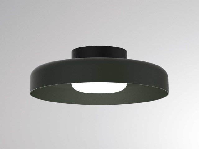 Sven SD væg/loftlampe i grøn og sort med 12W LED. Justerbar kelvin fra 2700K til 3000K og en diameter på 280 mm.