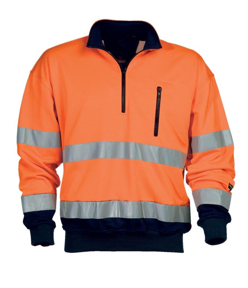 Kort sweatshirt med lynlås helt op i kraven. Har telefonlomme med lynlås og strop til headset. Rib i talje og manchetter. Godkendt efter EN 471.