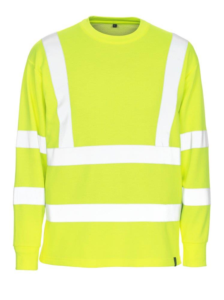 Fluorescerende sweatshirt med lodrette og vandrette reflekser for øget synlighed. Elastiske reflekser og slidser i siderne sikrer bevægelsesfrihed.
