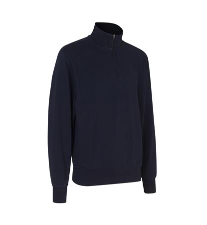 Klassisk sweatshirt i kraftig kvalitet med høj krave og lynlås i hals. Nakkebånd og nakkespejl og rib ved ærme og bund. Ubørstet inderside.