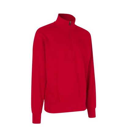 Klassisk sweatshirt i kraftig kvalitet med høj krave og lynlås i hals. Nakkebånd og nakkespejl og rib ved ærme og bund. Ubørstet inderside.