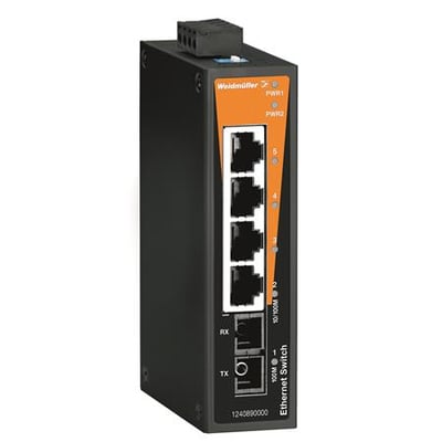Denne industrielle Ethernet switch fra Weidmüller er designet til pålidelig drift i krævende miljøer. Med 4 x 10/100 Mbps RJ45 porte og 1 x SC fiberport, giver den fleksible tilslutningsmuligheder for forskellige netværksenheder.