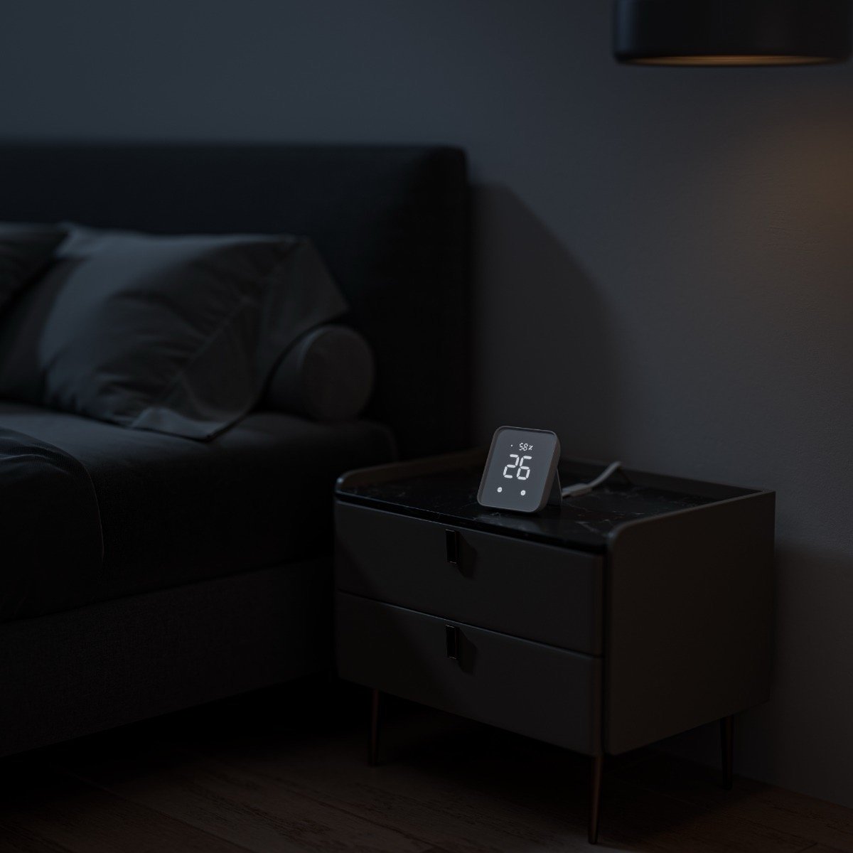 SwitchBot Hub 2 er udstyret med en indbygget, industriel schweizisk chip, der sikrer en nøjagtighed på op til ±1,8% RH og ±0,36°F i sin kabel. Derudover har panelet en lyssensor, som gør det muligt for skærmens lysstyrke at tilpasse sig omgivelserne problemfrit. Med WiFi-funktionalitet kan du overvåge dit hjems temperatur, luftfugtighed og lysdata samt deres variationer, når som helst og hvor som helst.