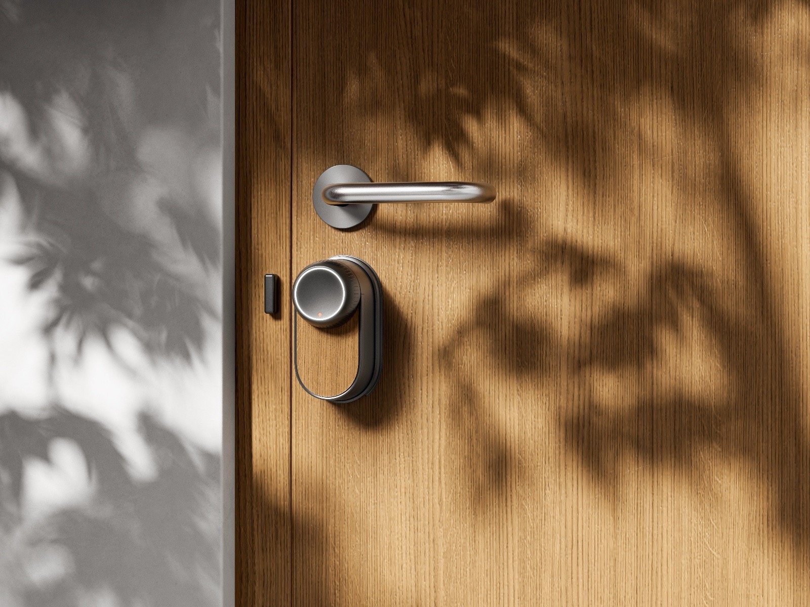 SwitchBot Lock Ultra har et fuldt metalhus, der er 50% slankere, med magnetisk hurtigudløsning og monteringsring for en plan montering uden brug af værktøj - ingen boring nødvendig. Den er nem at installere uden at beskadige din eksisterende lås. Leveres med 3 træpaneler, der matcher forskellige boligstile.