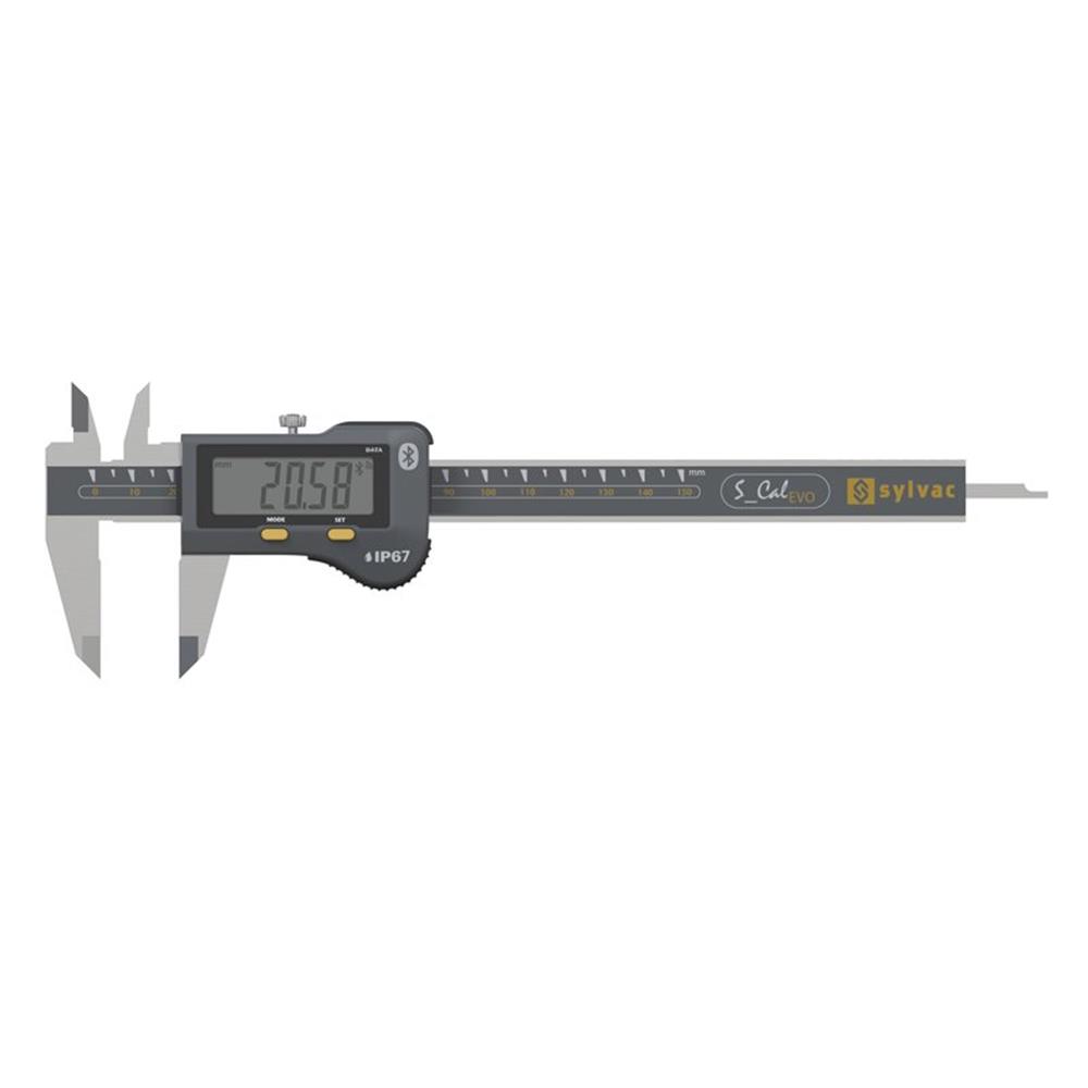 Digital skydelære fra SYLVAC, model S_Cal EVO Smart. Med Bluetooth, ekstra stor LCD skærm og IP67 beskyttelsesklasse. Måleområde: 0-150mm.