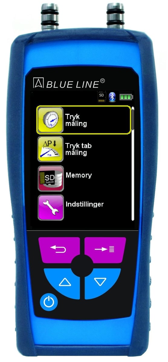 Manometrenes store 4 linjers TFT-farvedisplay bevirker, at måleværdierne let kan aflæses under alle tænkelige forhold, hvilket giver dig sikkerhed for korrekt aflæsning og minimerer tidsforbruget ved hver måling. I displayet vises aktuelt tryk, min/max værdier for målingen og evt. trykfald. I opsætningsmenuen kan vælges mellem 9 enheder, vælg bl.a. mellem Pa, mbar/hPa, PSI, mmHg, inWC m.v. Dette gør det let at sammenligne måleresultater, uanset hvilken måleenhed der anvendes. Målecellen nulstilles let, så du til hver en tid opnår de mest korrekte målinger.