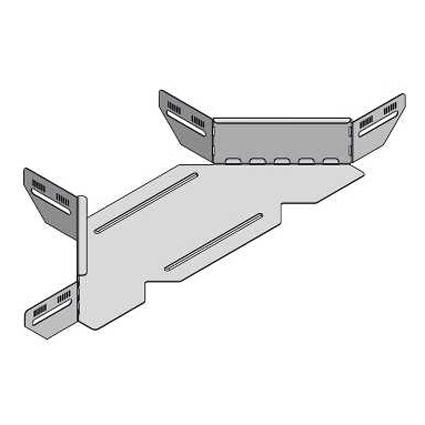 T-stykke til kabelbakke. Monteres let ved at skubbe fligene i siderne ind i bakken, mens bunden skubbes nedenunder.