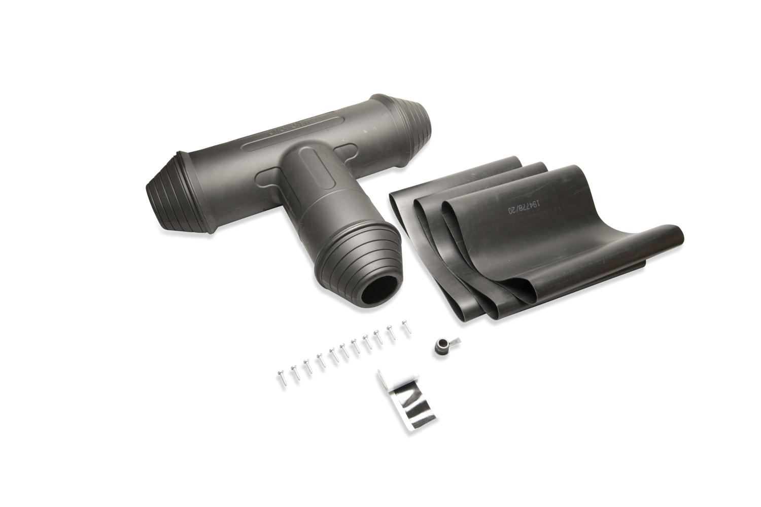 Universal T-isolering for kapperør, LLD-PE kappe, PUR-skum og krympemanchetter medfølger.