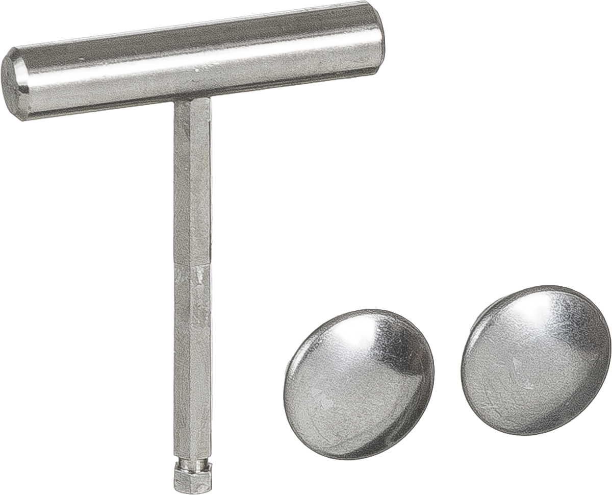 T-nøglen er en 6-kants nøgle der erstatter 169D0078, og passer til IM og PGS skabe. Låseknap trykkes på T-nøglen i et spor for fastholdelse. Leveres i pose med én T-nøgle og 2 låseknapper.