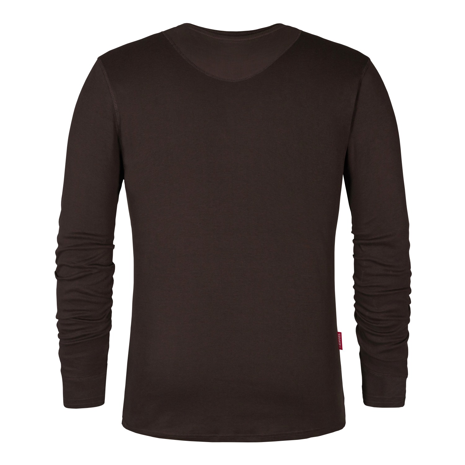 Klassisk Grandad langærmet T-shirt fra Fe Engel i en stilfuld mørkebrun farve. Ideel til hverdagsbrug med en behagelig pasform.