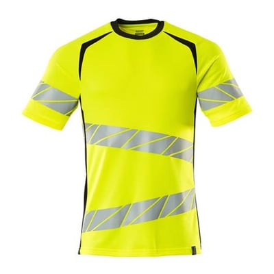 Denne premium T-shirt fra Mascot er designet til optimal synlighed og komfort. Den fluorescerende gule og sorte farvekombination sammen med de skrå, tværgående reflekser sikrer, at du er synlig under alle forhold.