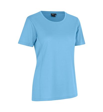 Oplev denne bløde Lyocell T-shirt til damer i en lys blå farve og størrelse S. T-shirten er designet med flotte skæringer og en unik mønsterstruktur, der minder om en bikube.