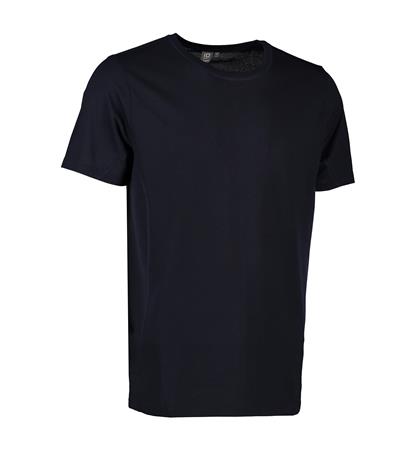Denne T-shirt i navy er fremstillet af blød Lyocell, et materiale kendt for sin høje komfort og naturlige egenskaber. T-shirten har flotte skæringer med et unikt mønster, der minder om en bikube.