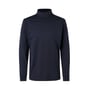Denne navy t-shirt er designet med fokus på komfort og stil. Den har en klassisk pasform med lange ærmer og en tætsiddende rullekrave, der giver et sofistikeret look. Rullekraven er forstærket med ekstra elastisk rib for at sikre en god pasform og komfort hele dagen. Ærmerne afsluttes med ribkant, der bidrager til t-shirtens holdbarhed og pasform.