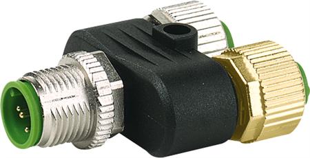 5-polet T-kobling M12-HAN/2X M12-HUN, skærmet.