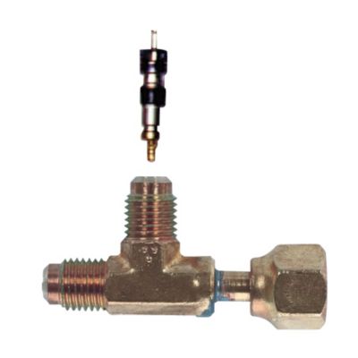 Et T-stykke med tre tilslutninger: 1/4" MFL, 1/4" FFL og 1/4" MFL. Ideel til forskellige VVS- og køleanvendelser.