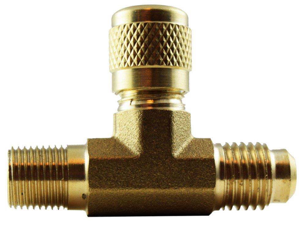 T-stykke A-31452 med dimensionerne 1/4''fl x 1/8''NPT x 1/4''fl.