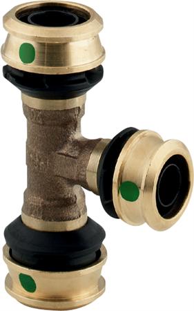 Raxofix T-stykke med SC-Contur- siliciumbronze- prestilslutning. Dimensionerne er d1: 32, d2: 20, d3: 20.