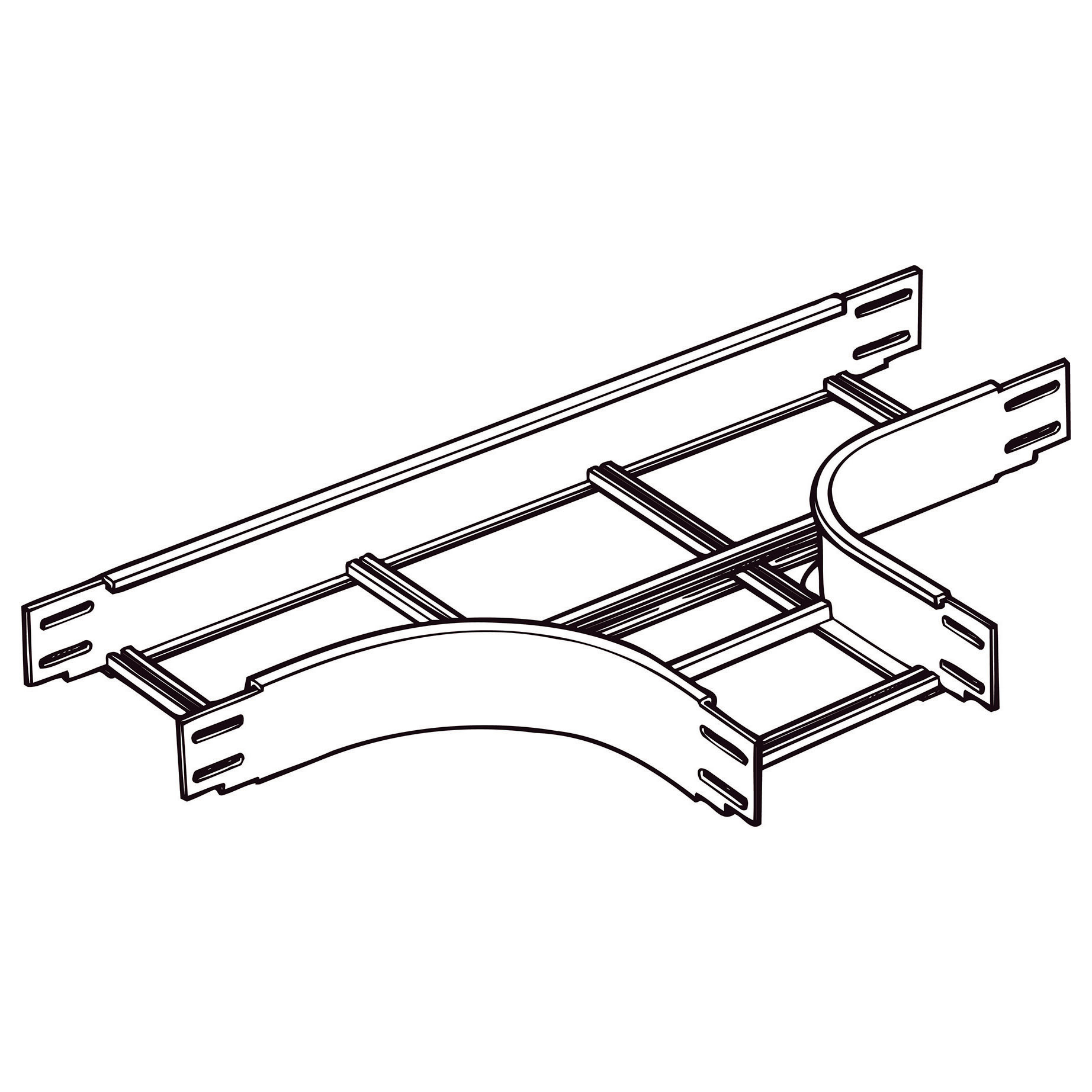 400 mm bredt T-stykke fremstillet af galvaniseret plade, velegnet til indendørs brug. Bruger 6 stk. skrue+møtrik M6x10mm (varenr. 8200100+8200200) til samling med kabelstigen.