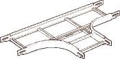 T-stykke, 400 mm bred, varmgalvaniseret. Velegnet til udendørs brug og passer til kabelstige MEDIUM GLO-4. Fastgøres med bræddebolt type M616-D.