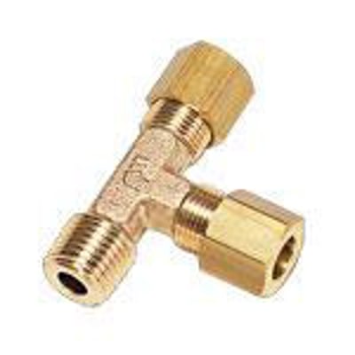 T-stykke med udvendigt konisk gevind, ØD: 10 mm og R1/4 gevind. Fremstillet i messing og overholder ROHS standarder.