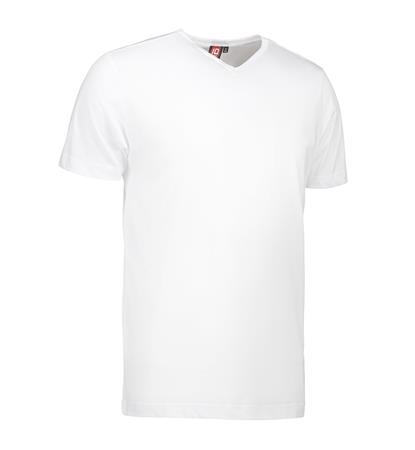 Denne T-TIME T-shirt er designet til mænd og har en tætsiddende pasform. Modellen er fremstillet i en klassisk hvid farve og har en moderne V-halsudskæring med en smal ribkant. T-shirten er ideel til daglig brug og kan nemt styles op eller ned.