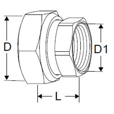 Kobling til Compact-P reguleringsventiler, med indvendigt gevind og dimensionerne 1x3/4". Måler 23 mm i længden og er DN20.