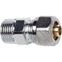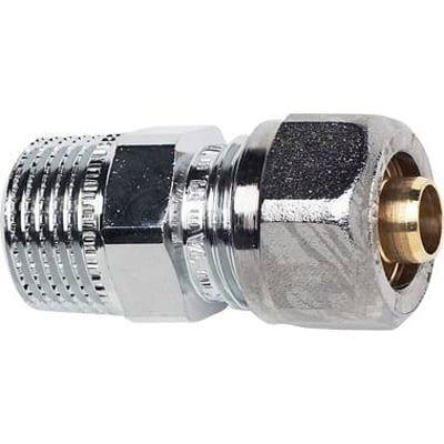 Klemringskobling fra TA Hydronics med forkromet overflade, som er beregnet til pex-rør. Har en klemringskobling i den ene ende og udvendigt gevind i den anden.