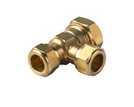 Klemringskobling fra TA Hydronics med ubehandlet overflade, som er beregnet til 15 x 2,5 mm/18 x 2,5 mm pex-rør. Har en kompressionskobling i begge ender samt afgreningen. Afgreningen er vinklet 90° i forhold til hovedrøret.