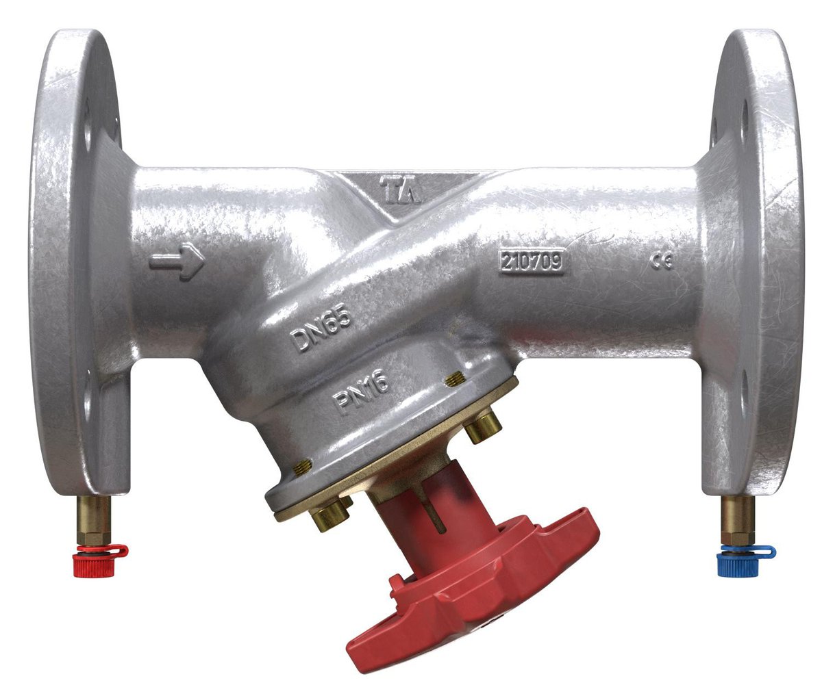 Strengreguleringsventil med flange tilslutninger for flow- og trykmåling. Anvendes i cirkulationssystemer for køle- og varmeanlæg.