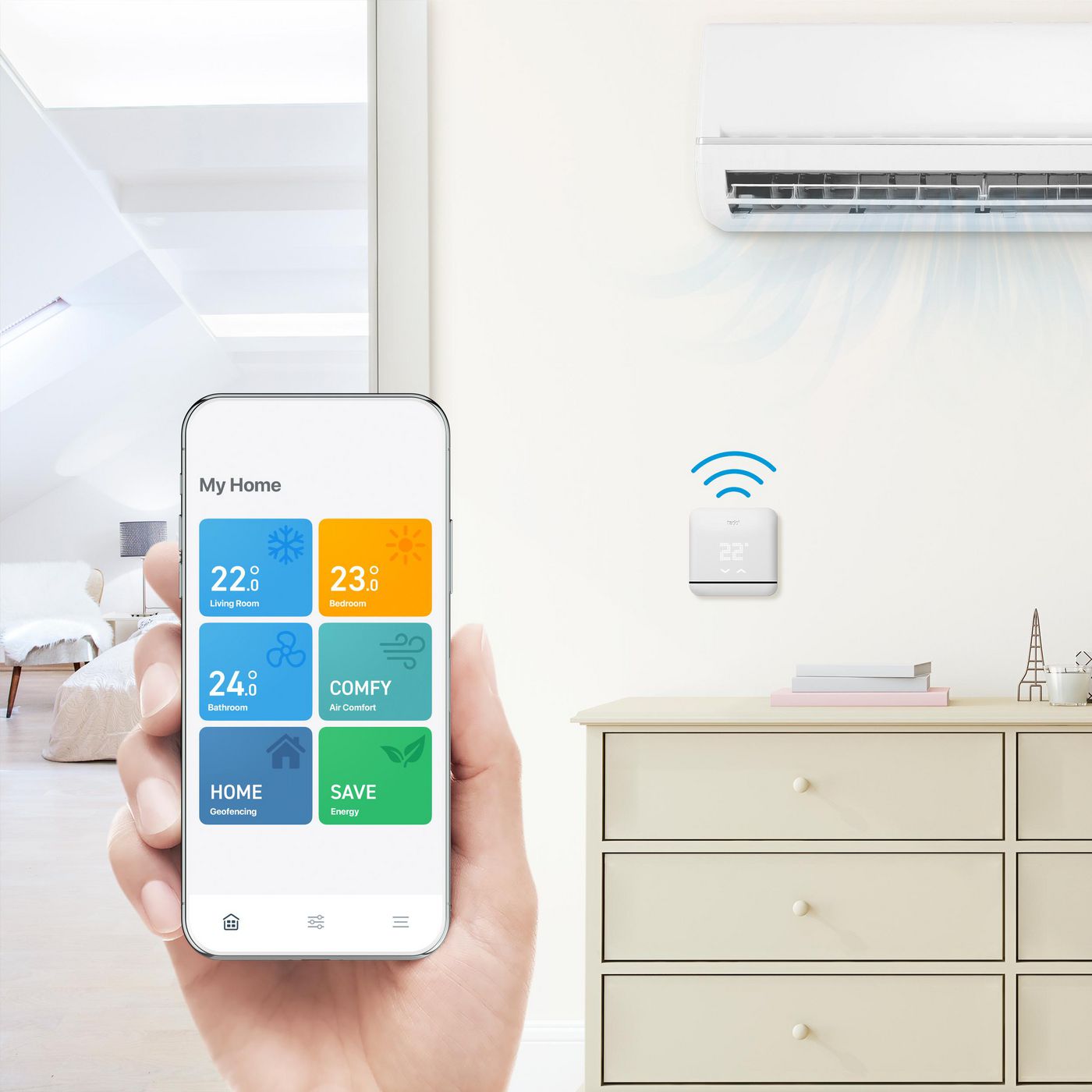 Gør det nemt at styre dit klimaanlæg eller din luft-til-luft varmepumpe hvor som helst via appen. Installer tado° selv og stop energispild.