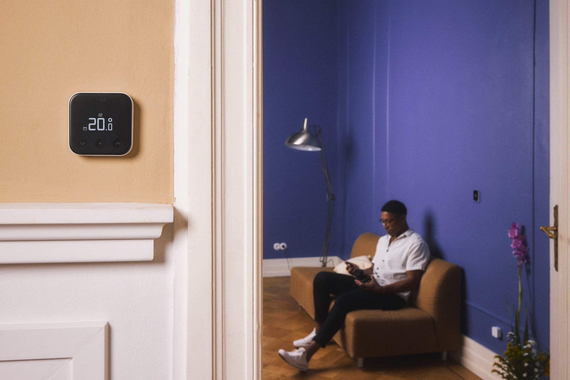 Styr temperaturen i hvert rum individuelt via appen eller med stemmestyring via din smart-højttaler (kompatibel med Amazon Alexa, Google Assistant og Apple Siri). Alternativt kan temperaturen justeres direkte på termostatens intuitive touchscreen.
