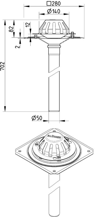 BLUCHER tagafløb til vakuum og tagfolie høj model