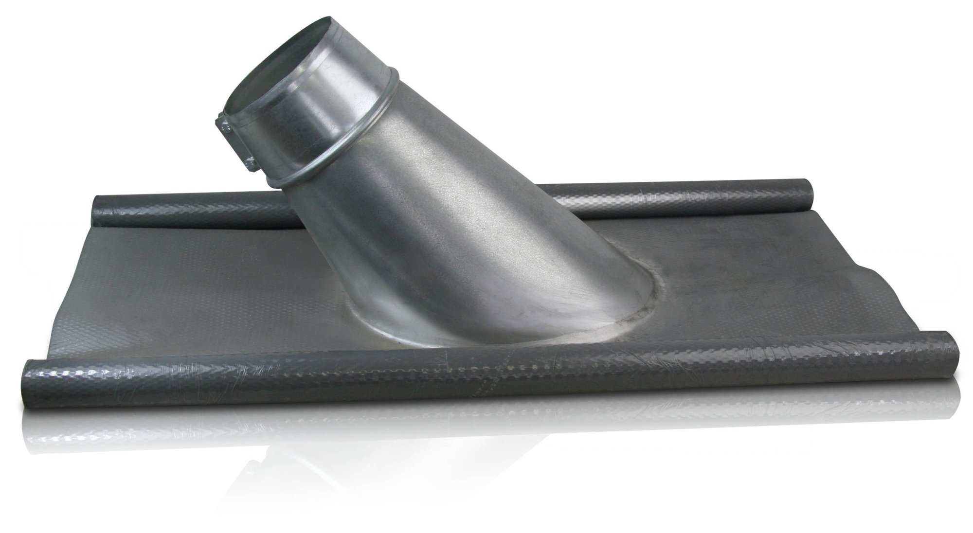 Taginddækning type VHING 0° og den medfølgende rørkrave er udført i galvaniseret plade.