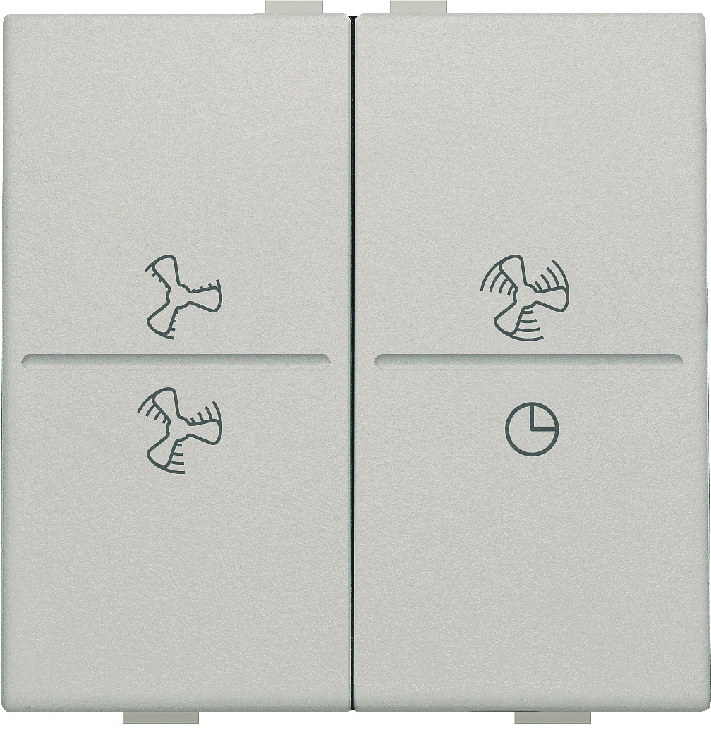 Grå tangent med ventilationssymboler for slukket tilstand og 3 hastigheder. Designet til trådløs 4-tryks betjening. Findes i flere farver.
